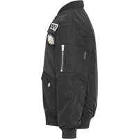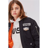 Heath ist eine schwarze Bomberjacke mit orangefarbenem Futter und mit Rippbündchen an Hals, Handgelenk und Hüfte. Die Jacke hat abnehmbare Nasa- und andere "Weltraum"-Patches auf der Vorderseite. Heath hat Taschen mit Druckknöpfen und eine zusätzliche Tasche mit Reißverschluss am linken Arm.