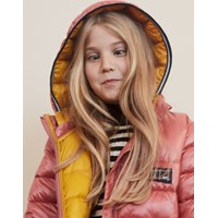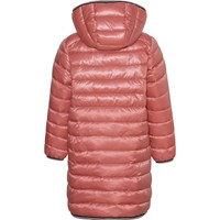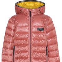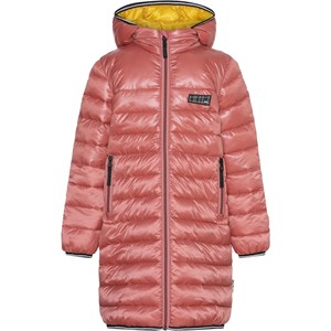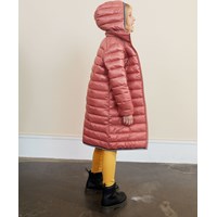 Helin ist ein schwarzer langer Mantel in Rosa mit abnehmbarer Kapuze. Die Jacke hat einen Reißverschluss und Reißverschlusstaschen auf der Vorderseite. Die Jacke ist mit einer Perlen-Wattierung gefüttert, die ein daunenähnliches Gefühl mit extra Weichheit hat und die Wärme gut hält.
