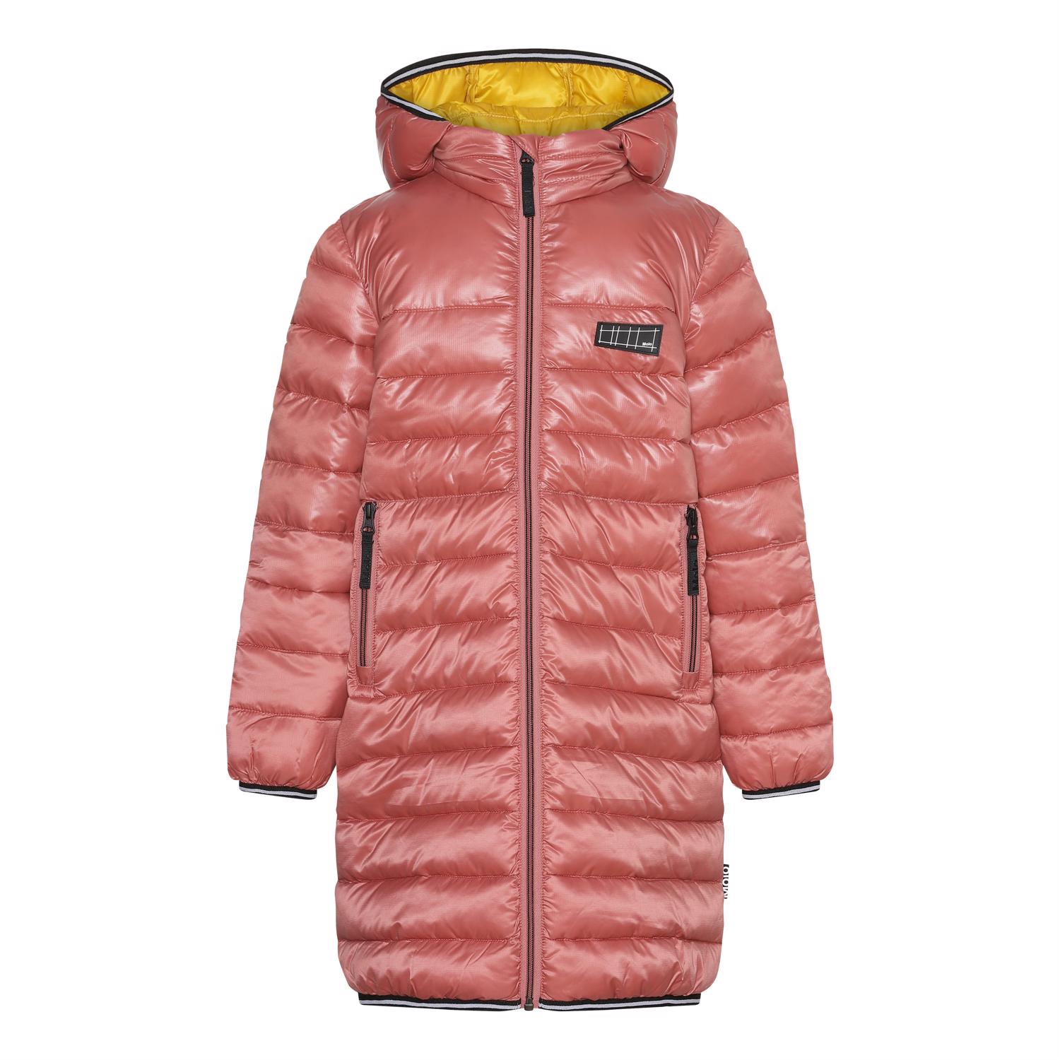 Helin ist ein schwarzer langer Mantel in Rosa mit abnehmbarer Kapuze. Die Jacke hat einen Reißverschluss und Reißverschlusstaschen auf der Vorderseite. Die Jacke ist mit einer Perlen-Wattierung gefüttert, die ein daunenähnliches Gefühl mit extra Weichheit hat und die Wärme gut hält.