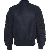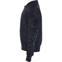 Hiker ist eine sportliche und funktionelle dunkelblaue Bomberjacke mit Reißverschluss und drapierten Ärmeln. Hiker hat praktische Taschen vorne sowie eine Reißverschlusstasche an einem Ärmel.