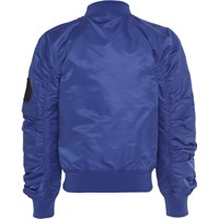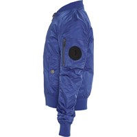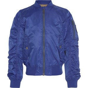Hiker ist eine sportliche und funktionelle Blau/ Lila Bomberjacke mit Reißverschluss und drapierten Ärmeln. Hiker hat praktische Taschen vorne sowie eine Reißverschlusstasche an einem Ärmel.