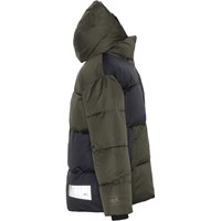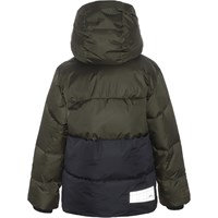 Hilo ist eine grüne Winterjacke mit Kapuze und Reißverschluss vorne. Die Jacke hat einen hohen Kragen und einen Reflektor auf der Rückseite. Hilo ist mit technischen Daunen gefüttert, genannt pearl padding, die für zusätzliche Weichheit sorgt, die Wärme gut hält und ein daunenähnliches Gefühl vermittelt. Dieses Produkt ist wasserabweisend PFC-freiImprägnierung (zB enthält kein PFOS, PFOA und dergleichen). Wassersäulendruck: 5.000 mm. Atmungsaktivität: 5.000 g/m2/24 Std.
