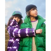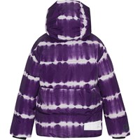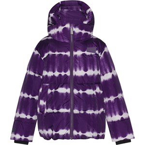 Warme und weiche Steppjacke mit Kapuze. Die Jacke ist Teil von Molos ‚Everyday Exploration‘, die Oberbekleidung für viele Alltagsabenteuer ist und gleichzeitig mit tollen Details oder farbenfrohen Prints auffällt. Natürlich wird auch die Jacke aus verantwortungsvollen und recycelten Materialien hergestellt und erfüllt damit die hohen Ansprüche von Molo an Oberbekleidung. Hier ist Hilo in lila Batikdruck mit weißen Streifen
