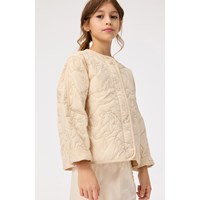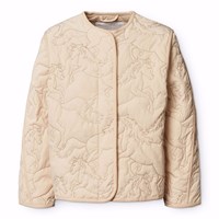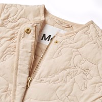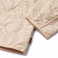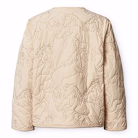 Beige wasserabweisende Thermojacke aus recyceltem Nylon mit gestepptem Pferdemuster. Die Jacke hat eine reguläre Passform, einen Reißverschluss mit Windschutzklappe und passendes Kantenband für einen schönen Abschluss.