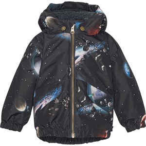 Unisex-Winterjacke für die Kleinsten, die sich perfekt für den Alltag eignet. Die vielen Eigenschaften der Winterjacke, wie hoher Wassersäulendruck und hohe Atmungsaktivität, halten das Kind in der kalten Jahreszeit warm und trocken. Die Winterjacke ist Teil der „Outdoor Proof“-Linie von Molo, also Oberbekleidung für gemäßigte Winter ohne zweistellige Minustemperaturen. Gleichzeitig erfüllt die Winterjacke die hohen Ansprüche von Molo an Oberbekleidung mit den gleichen funktionellen Details und hochwertigen Materialien, für die Molo am besten bekannt ist. Natürlich wird auch die Winterjacke aus verantwortungsvollen und recycelten Materialien hergestellt. Honour ist hier in Dunkelblau mit einem Aufdruck von Planeten.
