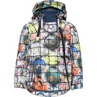 Hopla ist einer von Molos Klassikern, hier in einer leichten Sommerversion mit einem farbenfrohen Druck von Fußbällen. Hopla hat eine abnehmbare Kapuze, schräge Reißverschlüsse sowie einen verstellbare UNterkante und Molos bekannten reflektierenden Stern an der Seite beider Ärmel. Die Jacke ist aufgrund ihrer guten Atmungsaktivität für die meisten Wetterbedingungen geeignet. Dieses Produkt hat eine wasserabweisende PFC-freie Imprägnierung (enthält zB kein PFOS, PFOA und dergleichen). Wassersäulendruck: 5.000 mm. Atmungsaktivität: 5.000 g / m2 / 24h
