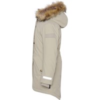 Peace ist eine funktionelle und wasserdichte Parka-Winterjacke in Beige. Die Jacke hat eine abnehmbare Kapuze mit Kunstpelzkante (die auch abgenommen werden kann) und Reflektor, verdeckter Reißverschluss mit Überlappung, Armlöcher mit Windschutz, drei Fronttaschen und Gummizug hinten für eine bessere Passform. Die Jacke besteht aus einem winddichten, wasserdichten und atmungsaktiven Material mit verklebten Nähten. Das Außenmaterial der Jacke ist zu 51 % recycelt, Futter und Innenmaterial sind ebenfalls recycelt und bestehen aus wiederverwertbarem Polyester. Dieses Produkt hat eine wasserabweisende PFC-freie Imprägnierung (zB enthält kein PFOS, PFOA und dergleichen). Der Wassersäulendruck und die Atmungsaktivität wurden weiter verbessert und betragen jetzt bis zu 15.000 mm Wassersäulendruck und eine Atmungsaktivität von 15.000 g/m2/24h.