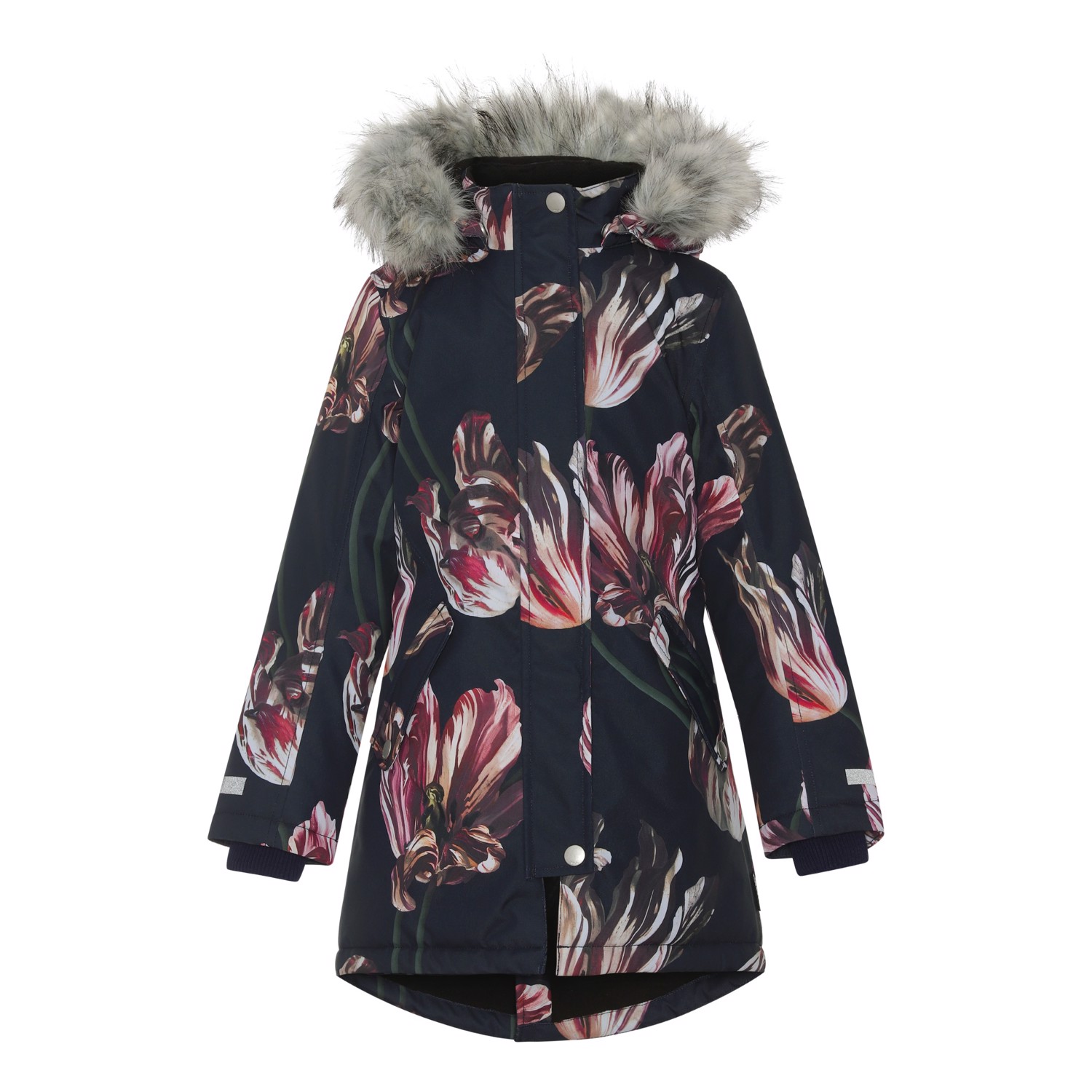 Peace ist eine funktionelle und wasserdichte Parka-Winterjacke in Schwarz mit Tulpen-Print. Aufgrund seiner unglaublich hohen Atmungsaktivität und Isolierung ist Peace sowohl für die extrem kalten als auch für gewöhnliche Winter perfekt. Die hohe Atmungsaktivität hilft, die Körpertemperatur zu regulieren und sorgt dafür, dass Ihrem Kind nicht zu kalt oder zu heiß wird. An wärmeren Wintertagen kann das Kind daher mit dünnen Schichten darunter auskommen und an Tagen mit heftigen zweistelligen Minusgraden können Sie mit einer zusätzlichen Schicht darunter ergänzen. Wenn Sie ein stillsitzendes Kind haben, ist Peace auch eine offensichtliche Wahl.Die Jacke hat eine abnehmbare Kapuze mit Kunstpelzbesatz (der auch entfernt werden kann) und Reflektor, einen verdeckten Reißverschluss mit Angriff, Armlöcher mit Windschutz, drei Vordertaschen und einen Gummizug im Rücken für eine bessere Passform. Die Jacke besteht aus einem winddichten, wasserdichten und atmungsaktiven Material mit getapten Nähten. Das Außenmaterial besteht zu 45% aus recyceltem Polyester, das 3M™ Thinsulate™ Futter zu 78% aus recyceltem Polyester und die Innenseite zu 100 % aus recyceltem Polyester. Dieses Produkt hat eine wasserabweisende PFC-freie Imprägnierung (zB enthält kein PFOS, PFOA und dergleichen). Wassersäulendruck: 15.000 mm. Atmungsaktivität: 15.000 g/m2/24h.