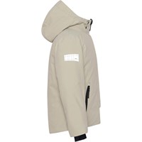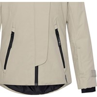 Pearson ist eine funktionelle und wasserdichte Skijacke in Beige mit schwarzen Reißverschlüssen. Pearson hat eine abnehmbare Kapuze, einen Frontreißverschluss mit asymmetrischem Überhang, Seitentaschen und ein verstellbares Armloch mit eng anliegendem Windschutz mit Daumenloch und reflektierenden Streifen an den Ärmeln. Die Jacke besteht aus einem winddichten, wasserdichten und atmungsaktiven Material mit verklebten Nähten. Das Außenmaterial der Jacke ist zu 51 % recycelt, Futter und Innenmaterial sind ebenfalls recycelt und bestehen aus wiederverwertbarem Polyester. Dieses Produkt hat eine wasserabweisende PFC-freie Imprägnierung (zB enthält kein PFOS, PFOA und dergleichen). Wassersäulendruck: 15.000 mm. Atmungsaktivität: 15.000 g / m2 / 24h.