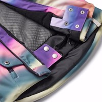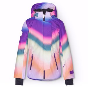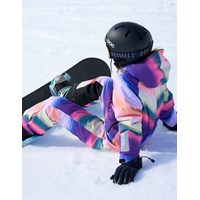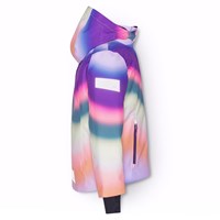 Wind- und wasserdichte Skijacke aus recyceltem Polyester. Die Jacke hat ein mehrfarbiges Graffiti-Muster. Sie hat eine abnehmbare gefütterte Kapuze und einen Reißverschluss mit einer Klappe, um den Wind abzuhalten. Die Jacke verfügt über große Reflektoren, um die Sichtbarkeit im Straßenverkehr zu erhöhen. Sie hat auch gefütterte Reißverschlusstaschen, eine Tasche am Ärmel für den Skipass und eine Innentasche. Die Jacke hat außerdem einen Windschutz am Bund und an den Ärmelöffnungen mit Daumenlöchern, um Schnee, Wind und Wasser fernzuhalten. Sie ist mit Fleece und 3M™ Thinsulate™ gefüttert, was eine größere Bewegungsfreiheit für das Kind ermöglicht.