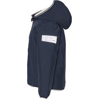 Schöne, gefütterte Allroundjacke aus wasserdichtem Material. Die dunkelblaue Jacke hat eine abnehmbare, mit Fleece gefütterte Kapuze, einen Frontreißverschluss, seitliche Taschen und einen Reflektor an Oberarm und Rücken. Die Jacke besteht aus einem winddichten, wasserdichten und atmungsaktiven Material, hat Fleece in der Kapuze und am Rücken und getapte Nähte. Dieses Produkt hat eine wasserabweisende PFC-freie Imprägnierung (zB enthält kein PFOS, PFOA und dergleichen). Wassersäulendruck: 5.000 mm. Atmungsaktivität: 5.000 g/m2/24 Std.