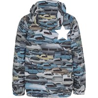 Waiton ist eine leichte und funktionelle Regenjacke mit Allover-Print von Autos in Blau- und Grautönen. Waiton hat einen Reißverschluss, der vor Wind und Regen schützt, versiegelte Nähte, eine abnehmbare Kapuze und zwei Fronttaschen. Die Jacke hat Molos legendären Sternreflex auf der Rückseite, der zusätzliche Sichtbarkeit im Dunkeln bietet. Dieses Produkt hat eine wasserbeständige PFC-freie Imprägnierung (enthält beispielsweise kein PFOS, PFOA und dergleichen). Wassersäulendruck: 5.000 mm. Atmungsaktivität: 5.000 g / m2 / 24h