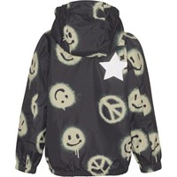Waiton ist eine leichte und funktionelle Regenjacke in Schwarz mit einem Aufdruck aus gelben Smileys. Waiton hat einen verdeckten Reißverschluss, der vor Wind und Regen schützt, getapte Nähte, eine abnehmbare Kapuze und zwei Fronttaschen. Die Jacke hat den ikonischen Sternreflektor von Molo auf der Rückseite, der für zusätzliche Sichtbarkeit im Dunkeln sorgt. Ein großer Vorteil dieses Regenbekleidungsprodukts ist auch, dass es atmungsaktiv ist, sodass bei hoher Aktivität keine Feuchtigkeit im Inneren entsteht. Dieses Produkt hat eine wasserabweisende PFC-freie Imprägnierung (z. B. enthält kein PFOS, PFOA und dergleichen). Wassersäulendruck: 5.000 mm. Atmungsaktivität: 5.000 g/m2/24h.