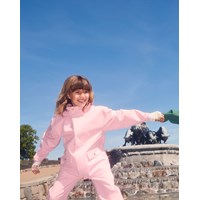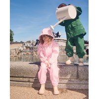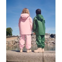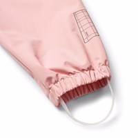 Pinkfarbene wind- und wasserdichte Regenhose aus strapazierfähigem und recyceltem Polyester. Die Hose hat eine normale Passform, einen verstellbaren elastischen Bund, abnehmbare und verstellbare Gummibänder mit dem Molo-Logo und einen Reflektor am Hosenbeinende. Die Nähte sind wasserdicht, um Wind und Wasser draußen zu halten.