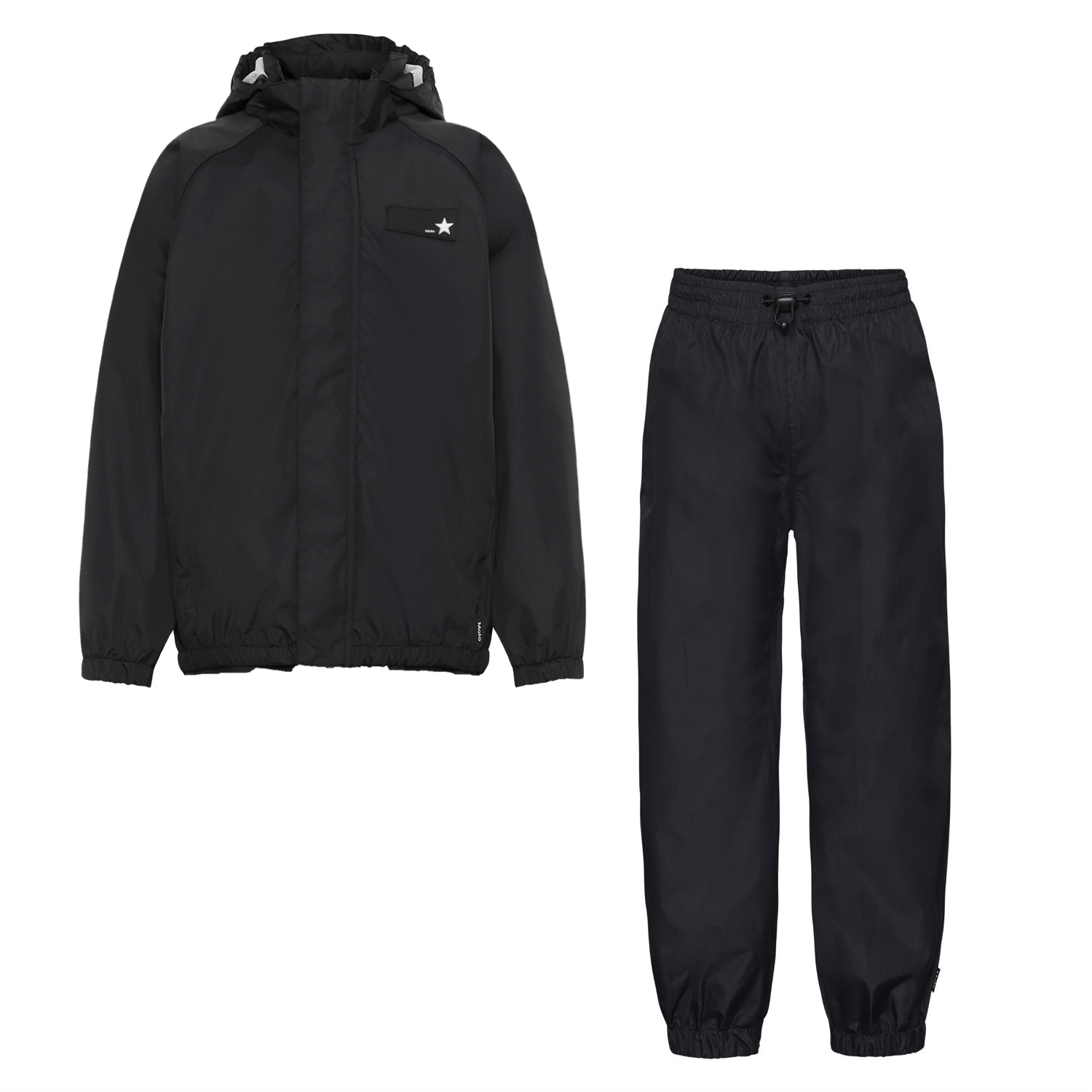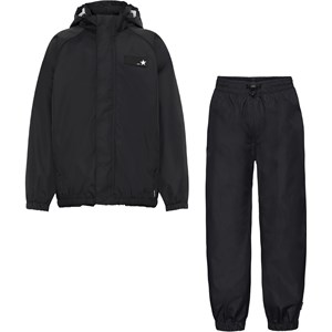 Whalley ist eine leichte und funktionelle Regen-Set in Schwarz. Die Regenjacke hat einen Reißverschluss, der vor Wind und Regen schützt, verschweißte Nähte, eine abnehmbare Kapuze und zwei Fronttaschen. Die Regenhose hat eine elastische Taille und Beinende. Sowohl die Regenjacke als auch die Hose haben Molos bekannten reflektierenden Stern auf der Rückseite. Das Regen-Set hat eine wasserabweisende PFC-freie Imprägnierung (enthält zB. kein PFOS, PFOA und dergleichen). Wassersäulendruck: 5.000 mm. Atmungsaktivität: 5.000 g / m2 / 24h.