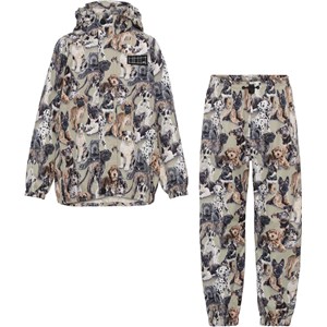 Whalley ist ein leichtes und funktionelles Regenset in Khaki mit charmantem Hundeprint. Die Regenjacke hat einen abgedeckten Reißverschluss, der vor Wind und Regen schützt, getapte Nähte, eine abnehmbare Kapuze und zwei Fronttaschen. Die Regenhose hat verschweißte Nähte, Gummizüge im Beinabschluss und in der Taille, die verstellbar sind. Sowohl die Regenjacke als auch die Hose haben auf der Rückseite den bekannten reflektierenden Stern von Molo. Ein großer Vorteil dieser Regenbekleidung ist auch, dass sie atmungsaktiv ist, sodass eine hohe Aktivität nicht zu einer feuchten Innenseite führt. Das Regenset hat eine wasserabweisende PFC-freie Imprägnierung (zB enthält kein PFOS, PFOA und dergleichen). Wassersäulendruck: 5.000 mm. Atmungsaktivität: 5.000 g / m2 / 24.