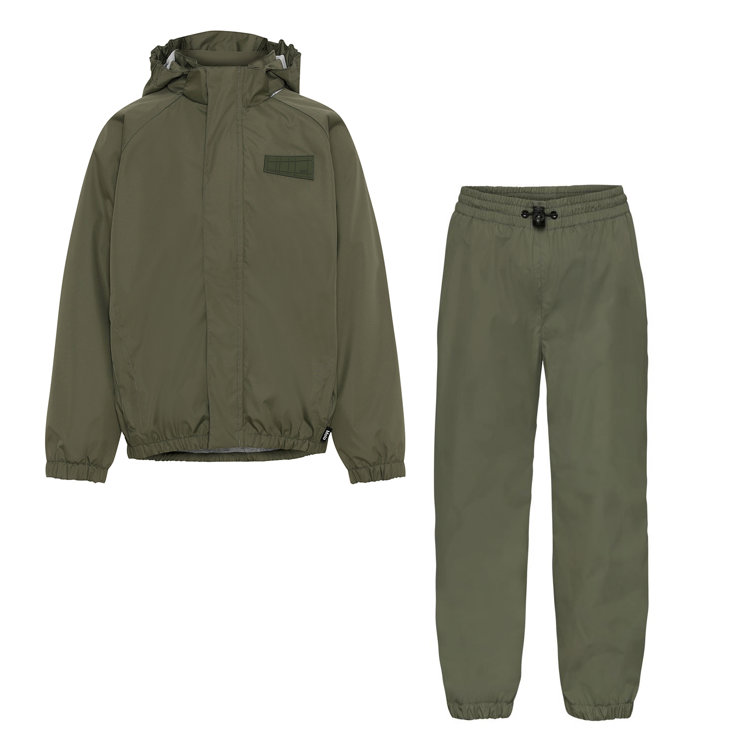 Whalley ist eine leichte und funktionelle Regen-Set in Khaki-Grün. Die Regenjacke hat einen Reißverschluss, der vor Wind und Regen schützt, verschweißte Nähte, eine abnehmbare Kapuze und zwei Fronttaschen. Die Regenhose hat eine elastische Taille und Beinende. Sowohl die Regenjacke als auch die Hose haben Molos bekannten reflektierenden Stern auf der Rückseite. Das Regen-Set hat eine wasserabweisende PFC-freie Imprägnierung (enthält zB kein PFOS, PFOA und dergleichen). Wassersäulendruck: 5.000 mm. Atmungsaktivität: 5.000 g / m2 / 24h