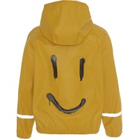 Zan ist eine goldgelbe Regenjacke mit eine Smiley auf Vorder- und Rückseite. Zan hat eine abnehmbare Kapuze und reflektierende Ärmel, die zusätzliche Sichtbarkeit im Dunkeln bieten. Dieses Produkt hat eine wasserbeständige PFC-freie Imprägnierung (enthält beispielsweise kein PFOS, PFOA und dergleichen). Wassersäulendruck: 5.000 mm. Atmungsaktivität: 5.000 g / m2 / 24h