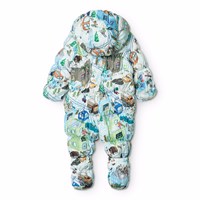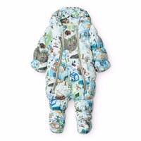 Wasserabweisender Babyanzug mit einem pixeligen Druck der realen Welt, lustigen Charakteren aus Molo's Kollektionen aus recyceltem Polyester. Der Anzug eignet sich für Spaziergänge im Kinderwagen an kalten Tagen und ist mit zwei Reißverschlüssen an der Vorderseite ausgestattet, die das An- und Ausziehen erleichtern, einer abnehmbaren Kapuze und kleinen abnehmbaren Füßen, die mit Knöpfen leicht an- und abgeklickt werden können. Der Anzug hat ein Futter aus Fleece, elastische Ärmel- und Beinöffnungen, die an Handschuhen, Socken und Stiefeln haften bleiben und vor Wind und Wetter schützen. Darüber hinaus hat der Anzug eine Füllung aus recyceltem Polyester, die für gleichmäßige Weichheit und optimale Wärmedämmung sorgt, und die wasserabweisende Oberfläche ist frei von PFOS und PFOA.