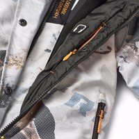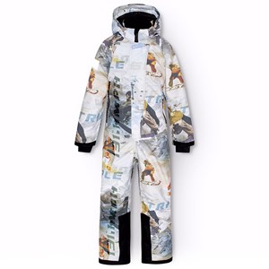 Schneeanzug aus recyceltem Polyester für einen kalten Winter oder einen Skiurlaub mit einem Pixel-Print eines coolen Snowboarders in den Alpen. Der Schneeanzug hat eine abnehmbare gefütterte Kapuze mit einem zusätzlichen elastischen Rand, um sie sicher am Kopf zu halten, und einen Reißverschluss mit einer Klappe, um Wind und Wasser abzuhalten. Es gibt elastische Bündchen an der Taille, den Ärmeln und den Beinöffnungen, um Schnee, Regen und Wind abzuhalten. Zusätzlich hat der Anzug eine zusätzliche Verstellung an der Beinöffnung und verwendet ein strapazierfähiges Material auf der Innenseite, um eine perfekte Passform über Skischuhe oder Winterstiefel zu gewährleisten und seine Lebensdauer zu verlängern. Er ist mit 3M™ Thinsulate™ gefüttert, was ihn leicht und für das Kind besonders beweglich macht. Der Schneeanzug hat Vordertaschen, eine Innentasche und eine kleine Tasche am Ärmel für einen Skipass, und alle Taschen haben wasserdichte Reißverschlüsse.