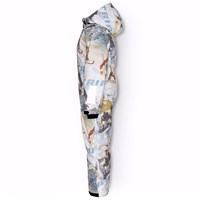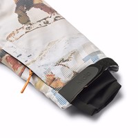 Schneegamasche an der Beinöffnung und abnehmbarer Gummistiefelriemen.