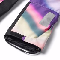 Schneeanzug aus recyceltem Polyester mit einem mehrfarbigen überlaufenden Graffiti-Druck. Der Schneeanzug hat eine abnehmbare gefütterte Kapuze mit einem zusätzlichen elastischen Rand, um sie am Kopf zu halten, sowie einen Reißverschluss vorne mit einer Klappe, um Wind und Wasser draußen zu halten. Es gibt auch einen elastischen Bund und Wind- und Schneemanschetten an den Ärmeln und Beinöffnungen, um Schnee, Regen und Wind draußen zu halten. Darüber hinaus hat der Schneeanzug eine zusätzliche Verstellung an der Beinöffnung und verwendet ein strapazierfähiges Material auf der Innenseite, um sicherzustellen, dass der Schneeanzug perfekt über Skischuhe oder Winterstiefel passt und seine Lebensdauer verlängert. Der Schneeanzug hat Reflektoren an den Ärmeln und Beinen, um die Sichtbarkeit im Verkehr zu erhöhen. Der Schneeanzug ist mit 3M™ Thinsulate™ gefüttert, was dem Kind aufgrund seines geringen Gewichts eine größere Beweglichkeit bietet. Es gibt Vordertaschen, eine Innentasche und eine kleine Tasche am Ärmel für einen Liftausweis, alle mit wasserdichten Reißverschlüssen.