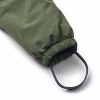 Wasserabweisender dunkelgrüner Schneeanzug für die Kleinen aus recyceltem Nylon. Der Schneeanzug hat eine abnehmbare, gefütterte Kapuze und einen extra langen Reißverschluss vorne, der das An- und Ausziehen erleichtert. Das elastische Band um die Taille sowie an den Ärmel- und Beinabschlüssen sorgt dafür, dass Schnee, Regen und Wind draußen bleiben, während Handschuhe und Stiefel an ihrem Platz bleiben. Der Schneeanzug verfügt über reflektierende Bänder an den Taschen und Ärmeln, um die Sichtbarkeit im Verkehr zu erhöhen. Zusätzlich hat der Schneeanzug ein Fleecefutter unten und am Rücken sowie einen intern verstellbaren Gummizug um die Taille, der eine bequeme und passgenaue Passform um den Körper bietet.