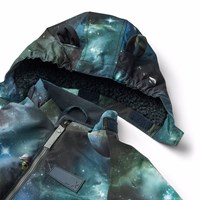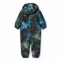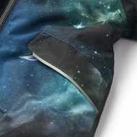 Wasserabweisender Overall mit Weltraumdruck für die Kleinen, aus recyceltem Polyester. Der Anzug hat eine abnehmbare, gefütterte Kapuze und einen extra langen Reißverschluss vorne, der das An- und Ausziehen erleichtert. Das elastische Band an der Taille sowie an den Ärmel- und Beinabschlüssen sorgt dafür, dass Schnee, Regen und Wind draußen bleiben, während Handschuhe und Stiefel an ihrem Platz bleiben. Der Overall ist mit reflektierenden Bändern an den Taschen und Ärmeln ausgestattet, die für zusätzliche Sichtbarkeit im Verkehr sorgen. Zusätzlich verfügt der Anzug über ein Fleecefutter am Gesäß und am Rücken sowie über einen intern verstellbaren Gummizug an der Taille, der eine bequeme und passgenaue Passform um den Körper bietet.