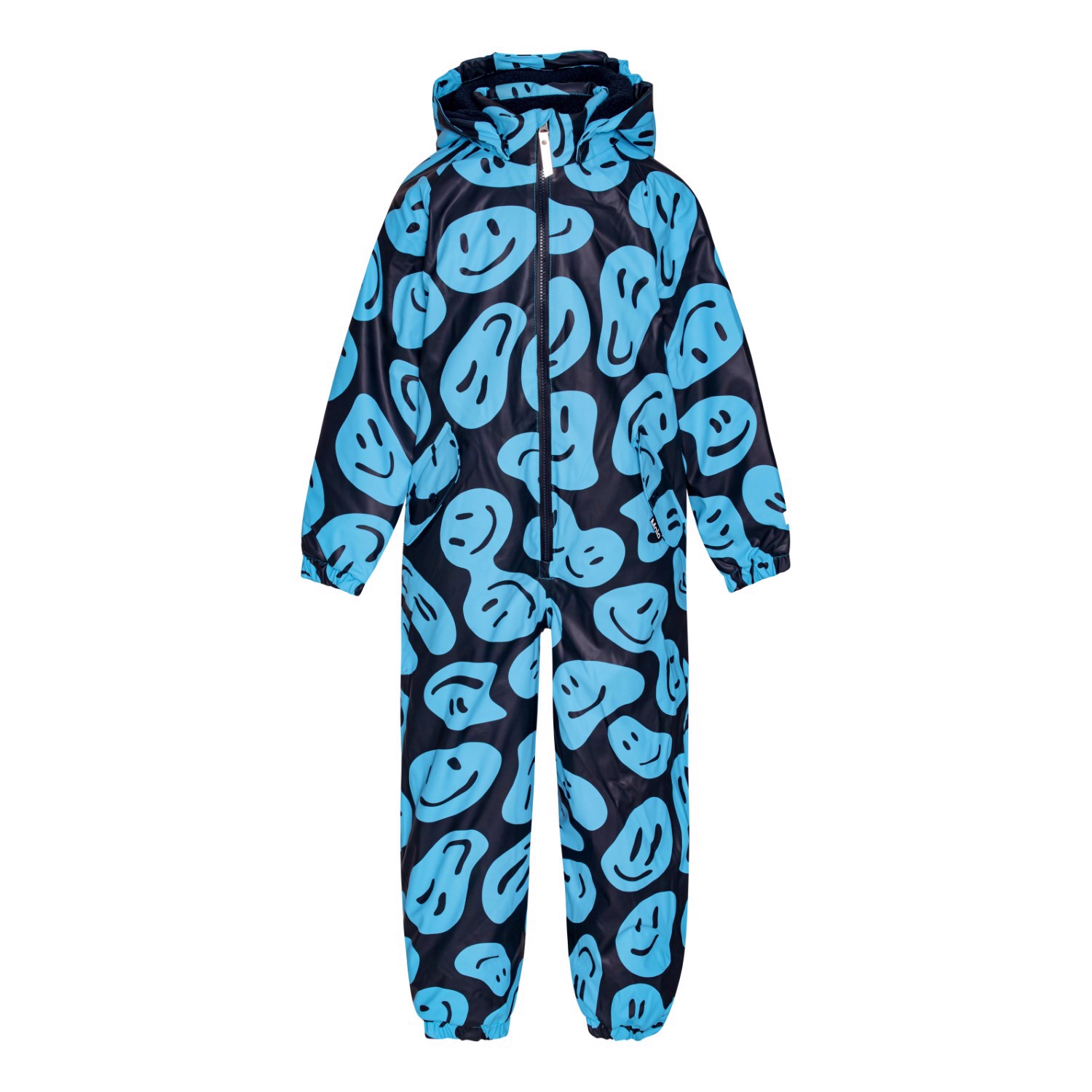 Unisex-Schneeanzug aus Gummi, der perfekt für den Alltag und seine Herausforderungen geeignet ist. Der Schneeanzug ist Teil der neuen Oberbekleidungslinie „Rubber Excellence“ von Molo, die das Kind unabhängig von den Wetterbedingungen trocken hält. Der Schneeanzug ist absolut wasserdicht und wurde mit einer innovativen hohen Atmungsaktivität für Naturkautschuk entwickelt. Das Obermaterial des Schneeanzugs ist schmutzabweisend und lässt sich daher sehr leicht reinigen. Rubber Excellence hat eine gute Isolierung und ist für mäßig kalte Winter geeignet. Paco ist hier in Dunkelblau mit einem Aufdruck lustiger Gesichter.