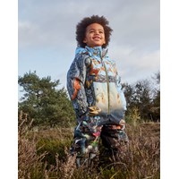 Wenn Ihr Kind auch verrückt danach ist, den Wald zu erkunden und verschiedene Tiere und Pflanzen zu entdecken, dann wird dieser Schneeanzug mit einem schönen Placement-Print des Waldes und seinen goldenen Blättern, bunten Pilzen und kleinen Tieren ein sicherer Hit. Der Schneeanzug ist Teil von Molos ‚Everyday Exploration‘, die Oberbekleidung für viele Abenteuer des Alltags ist und gleichzeitig mit tollen Details oder Farben auffällt. Natürlich wird auch der Anzug aus verantwortungsvollen und recycelten Materialien hergestellt und erfüllt damit die hohen Ansprüche von Molo an Oberbekleidung.