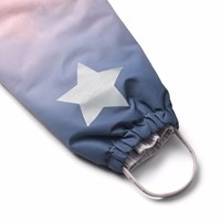 Wasserabweisender pastellfarbener Overall mit weißem Pegasus aus recyceltem Polyester. Der Overall verfügt über Reißverschlusstaschen, eine abnehmbare gefütterte Kapuze mit Windschutzklappe und einen langen Frontreißverschluss für einfaches An- und Ausziehen. Elastik an den Ärmel- und Beinbündchen hält Schnee, Regen und Wind ab und sorgt dafür, dass Handschuhe und Stiefel an Ort und Stelle bleiben. Der Overall ist mit einem Sternreflektor am Bein für zusätzliche Sichtbarkeit im Verkehr ausgestattet, und der intern verstellbare Taillenelastik sorgt für eine enge und bequeme Passform um den Körper.