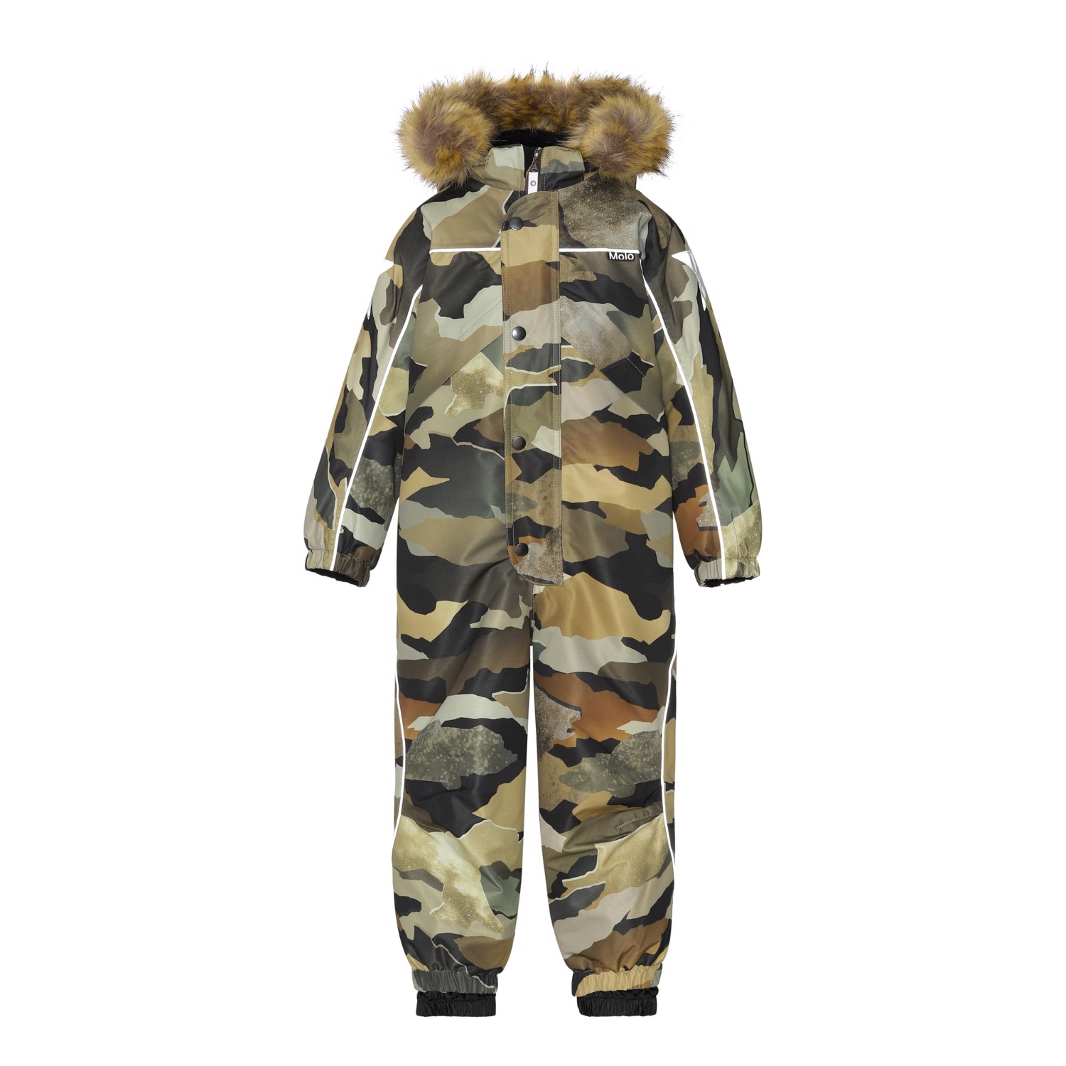 Polaris Fur ist einer von Molos Favoriten, wenn es richtig kalt ist. Polaris ist ein funktionaler Fluganzug mit Camouflage-Print. Polaris ist aufgrund seiner unglaublich hohen Atmungsaktivität und Isolierung sowohl für die extrem kalten als auch für gewöhnliche Winter perfekt. Die hohe Atmungsaktivität hilft, die Körpertemperatur zu regulieren und sorgt dafür, dass Ihrem Kind nicht zu kalt oder zu heiß wird. An wärmeren Wintertagen kann das Kind daher mit dünnen Schichten darunter auskommen und an Tagen mit heftigen zweistelligen Minusgraden können Sie mit einer zusätzlichen Schicht darunter ergänzen. Wenn Sie ein stillsitzendes Kind haben, ist Polaris auch eine offensichtliche Wahl. Der Fliegeranzug hat außerdem reflektierende Paspeln und einen Webpelzkragen (kann entfernt werden). Polaris hat eine abnehmbare Kapuze, einen Frontreißverschluss mit Überschlag, die bekannten Sternreflektoren von Molo an Armen und Beinen, einen Schneefang in der Beinöffnung und einen Gummiriemen unter dem Fuß. Neben seinen vielen bekannten Qualitäten wird Polaris jetzt auch teilweise recycelt. Das Außenmaterial besteht zu 45% aus recyceltem Polyester, das 3M™ Thinsulate™ Futter zu 83% aus recyceltem Polyester und die Innenseite zu 100% aus recyceltem Polyester. Der Fluganzug besteht aus einem winddichten, wasserdichten und atmungsaktiven Material und hat getapte Nähte. Dieses Produkt hat eine wasserabweisende PFC-freie Imprägnierung (zB enthält kein PFOS, PFOA und dergleichen) und hat auf dieser Grundlage den 'Best-in-Test' gewonnen. Der Wassersäulendruck und die Atmungsaktivität wurden weiter verbessert und liegen nun bei bis zu 15.000 mm Wassersäulendruck und einer Atmungsaktivität von 15.000 g/m2/24h.