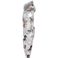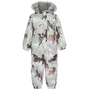 Polaris Fur ist einer von Molos Favoriten, wenn es richtig kalt ist. Polaris ist ein funktioneller Fliegeranzug in Hellgrau mit Pferdeaufdruck. Polaris ist aufgrund seiner unglaublich hohen Atmungsaktivität und Isolierung sowohl für die extrem kalten als auch für gewöhnliche Winter perfekt. Die hohe Atmungsaktivität hilft, die Körpertemperatur zu regulieren und sorgt dafür, dass Ihrem Kind nicht zu kalt oder zu heiß wird. An wärmeren Wintertagen kann das Kind daher mit dünnen Schichten darunter auskommen und an Tagen mit heftigen zweistelligen Minusgraden können Sie mit einer zusätzlichen Schicht darunter ergänzen. Wenn Sie ein stillsitzendes Kind haben, ist Polaris auch eine offensichtliche Wahl. Der Fliegeranzug hat außerdem reflektierende Paspeln und einen Webpelzkragen (kann entfernt werden). Polaris hat eine abnehmbare Kapuze, einen Frontreißverschluss mit Überschlag, die bekannten Sternreflektoren von Molo an Armen und Beinen, einen Schneefang in der Beinöffnung und einen Gummiriemen unter dem Fuß. Neben seinen vielen bekannten Qualitäten wird Polaris jetzt auch teilweise recycelt. Das Außenmaterial besteht zu 45% aus recyceltem Polyester, das 3M™ Thinsulate™ Futter zu 83% aus recyceltem Polyester und die Innenseite zu 100% aus recyceltem Polyester. Der Fluganzug besteht aus einem winddichten, wasserdichten und atmungsaktiven Material und hat getapte Nähte. Dieses Produkt hat eine wasserabweisende PFC-freie Imprägnierung (zB enthält kein PFOS, PFOA und dergleichen) und hat auf dieser Grundlage den 'Best-in-Test' gewonnen. Der Wassersäulendruck und die Atmungsaktivität wurden weiter verbessert und liegen nun bei bis zu 15.000 mm Wassersäulendruck und einer Atmungsaktivität von 15.000 g/m2/24h.