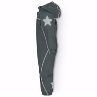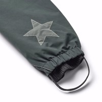 Dunkelgrüner Schneeanzug aus recyceltem Polyester für einen kalten Winter. Der Schneeanzug hat eine abnehmbare gefütterte Kapuze und Reißverschlüsse mit Klappen, um Wind und Wasser abzuhalten. Er hat elastische Bündchen an Taille, Ärmeln und Beinen, um Schnee, Regen und Wind draußen zu halten. Der Schneeanzug ist mit Reflektoren entlang der Seitennähte, um die Kapuze herum und großen sternförmigen Reflektoren an Ärmeln und Beinen ausgestattet, um die Sichtbarkeit im Verkehr zu erhöhen. Der Schneeanzug ist mit 3M™ Thinsulate™ gefüttert, was ihn leicht macht und eine größere Bewegungsfreiheit für das Kind bietet. Außerdem gibt es gefütterte Vordertaschen mit wasserdichten Reißverschlüssen.