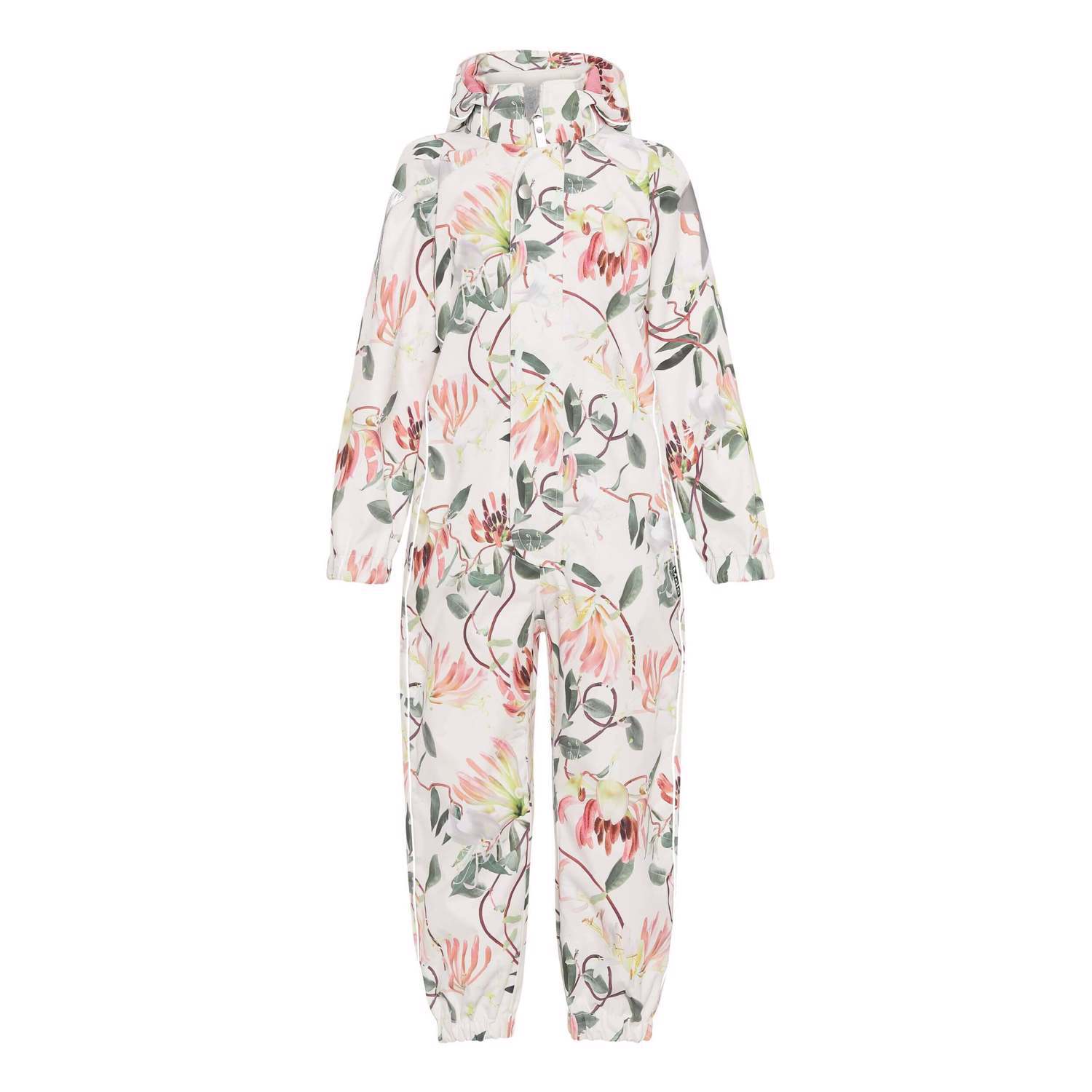 Funktioneller Schneeanzug, hier in leichter und ungefütterter Ausführung mit schönem Blumendruck. Der Schneeanzug besteht aus einem verantwortungsvollen Material, da er zu 100% aus recyceltem Polyester aus Plastikflaschen besteht. Der Anzug hat eine abnehmbare Kapuze, einen Frontreißverschluss mit Überschlag, das vor Wind und Wasser schützt, einen Gummizug in der Taille hinten, an den Ärmel- und Beinabschlüssen und mehreren Reflektoren. Der Anzug ist für die meisten Wetterbedingungen geeignet, da das Material selbst wasserdicht, atmungsaktiv und mit getapten Nähten versehen ist. Dieses Produkt hat eine wasserabweisende PFC-freie Imprägnierung (zB enthält kein PFOS, PFOA und dergleichen). Wassersäulendruck: 5.000 mm. Atmungsaktivität: 5.000 g / m2 / 24h.