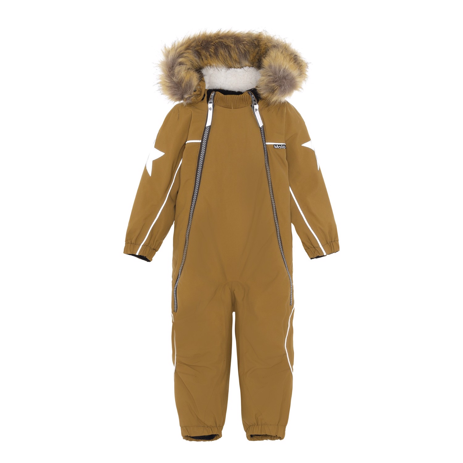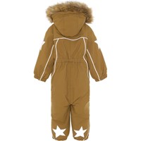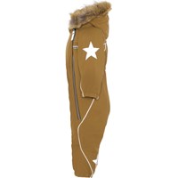 Pyxis ist ein funktioneller Fliegeranzug in Braun für Babys und Kleinkinder. Pyxis ist aufgrund seiner unglaublich hohen Atmungsaktivität und Isolierung sowohl für die extrem kalten als auch für gewöhnliche Winter perfekt. Die hohe Atmungsaktivität hilft, die Körpertemperatur zu regulieren und sorgt dafür, dass Ihrem Kind nicht zu kalt oder zu heiß wird. An wärmeren Wintertagen kann das Kind daher mit dünnen Schichten darunter auskommen und an Tagen mit heftigen zweistelligen Minusgraden können Sie mit einer zusätzlichen Schicht darunter ergänzen. Wenn Sie ein stillsitzendes Kind haben, ist Pyxis auch eine offensichtliche Wahl. Der Fliegeranzug hat eine abnehmbare Kapuze mit schönem Kunstpelzkragen, sowie zwei schräge Reißverschlüsse auf der Vorderseite, die das An- und Ausziehen des Anzugs erleichtern, Schneefang in der Beinöffnung, Gummiband unter dem Fuß und Molo's Bekannter Reflexstern an Oberarmen und Beinrückseite. Der Fluganzug besteht aus einem winddichten, wasserdichten und atmungsaktiven Material. Das Außenmaterial besteht zu 59% aus recyceltem Nylon, das 3M™ Thinsulate™ Futter zu 83% aus recyceltem Polyester und die Innenseite zu 100% aus recyceltem Nylon. Dieses Produkt hat eine wasserabweisende PFC-freie Imprägnierung (zB enthält kein PFOS, PFOA und dergleichen). Der Wassersäulendruck und die Atmungsaktivität wurden weiter verbessert und liegen nun bei bis zu 15.000 mm Wassersäulendruck und einer Atmungsaktivität von 15.000 g/m2/24 Std.