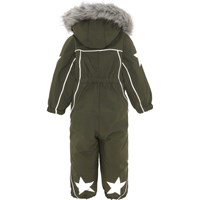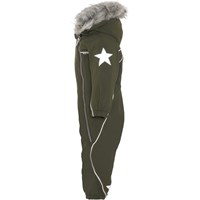 Pyxis ist ein funktionaler Fluganzug in Grün für Babys und Kleinkinder. Pyxis ist aufgrund seiner unglaublich hohen Atmungsaktivität und Isolierung sowohl für die extrem kalten als auch für gewöhnliche Winter perfekt. Die hohe Atmungsaktivität hilft, die Körpertemperatur zu regulieren und sorgt dafür, dass Ihrem Kind nicht zu kalt oder zu heiß wird. An wärmeren Wintertagen kann das Kind daher mit dünnen Schichten darunter auskommen und an Tagen mit heftigen zweistelligen Minusgraden können Sie mit einer zusätzlichen Schicht darunter ergänzen. Wenn Sie ein stillsitzendes Kind haben, ist Pyxis auch eine offensichtliche Wahl. Der Fliegeranzug hat eine abnehmbare Kapuze mit schönem Kunstpelzkragen, sowie zwei schräge Reißverschlüsse auf der Vorderseite, die das An- und Ausziehen des Anzugs erleichtern, Schneefang in der Beinöffnung, Gummiband unter dem Fuß und Molo's Bekannter Reflexstern an Oberarmen und Beinrückseite. Der Fluganzug besteht aus einem winddichten, wasserdichten und atmungsaktiven Material. Das Außenmaterial besteht zu 59% aus recyceltem Nylon, das 3M™ Thinsulate™ Futter zu 83% aus recyceltem Polyester und die Innenseite zu 100% aus recyceltem Nylon. Dieses Produkt hat eine wasserabweisende PFC-freie Imprägnierung (zB enthält kein PFOS, PFOA und dergleichen). Der Wassersäulendruck und die Atmungsaktivität wurden weiter verbessert und liegen nun bei bis zu 15.000 mm Wassersäulendruck und einer Atmungsaktivität von 15.000 g/m2/24 Std.
