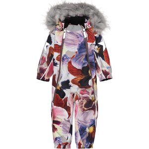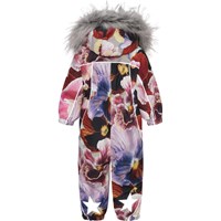 Pyxis ist ein funktioneller Schneeanzug für Babys und Kleinkinder mit Aufdruck von großen Blumen. Der Schneeanzug hat eine abnehmbare Kapuze mit Kunstpelzkante, sowie zwei schräge Reißverschlüsse an der Vorderseite, die das An- und Ausziehen erleichtern, Schneefang in der Beinöffnung, Gummiriemen unter dem Fuß und Molo's gut bekannter Reflexstern an den Oberarmen und der Rückseite der Beine. Der Schneeanzug besteht aus einem winddichten, wasserdichten und atmungsaktiven Material, während Futter und Innenmaterial recycelt sind und aus wiederverwertbarem Polyester bestehen. Der Schneeanzug hat auch verklebte Nähte. Dieses Produkt hat eine wasserabweisende PFC-freie Imprägnierung (zB enthält kein PFOS, PFOA und dergleichen). Der Wassersäulendruck und die Atmungsaktivität wurden weiter verbessert und betragen jetzt bis zu 15.000 mm Wassersäulendruck und eine Atmungsaktivität von 15.000 g/m2/24h.