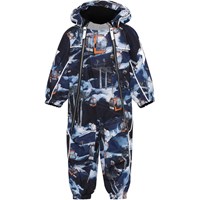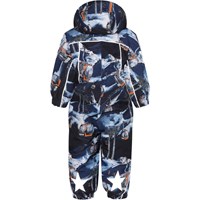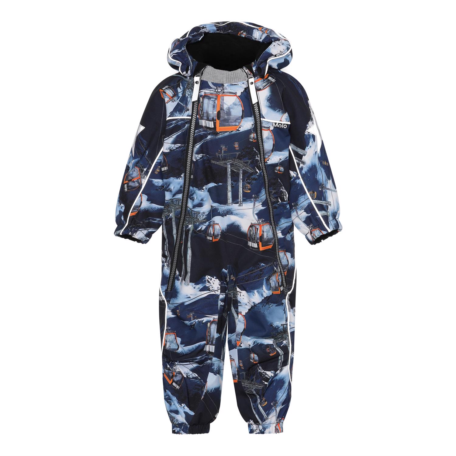 Pyxis ist ein funktioneller Schneeanzug für Babys und Kleinkinder in Blau mit Aufdruck von Skiliften. Der Schneeanzug hat eine abnehmbare Kapuze, sowie zwei schräge Reißverschlüsse an der Vorderseite, die das An- und Ausziehen erleichtern, Schneefänger in der Beinöffnung, Gummiriemen unter dem Fuß und Molos bekannter reflektierender Stern auf den Oberarmen und die Rückseite der Beine. Der Schneeanzug besteht aus einem winddichten, wasserdichten und atmungsaktiven Material, während Futter und Innenmaterial recycelt sind und aus wiederverwertbarem Polyester bestehen. Der Schneeanzug hat auch verklebte Nähte. Dieses Produkt hat eine wasserabweisende PFC-freie Imprägnierung (zB enthält kein PFOS, PFOA und dergleichen). Der Wassersäulendruck und die Atmungsaktivität wurden weiter verbessert und betragen jetzt bis zu 15.000 mm Wassersäulendruck und eine Atmungsaktivität von 15.000 g/m2/24h.